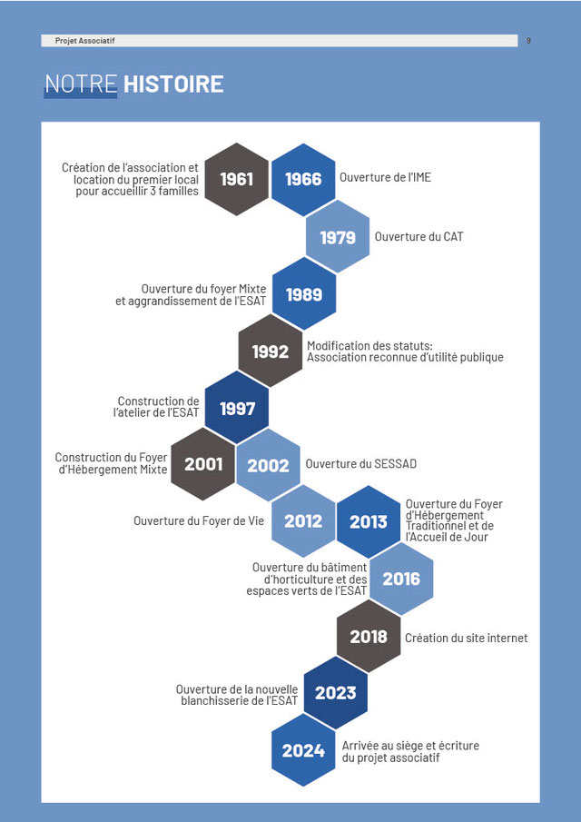 Association Loi 1901 à but non lucratif administrée par des bénévoles, elle a été créée le 24 août 1961, grâce à l’engagement des familles, pour répondre aux besoins d’enfants et adolescents handicapés exclus du système scolaire.